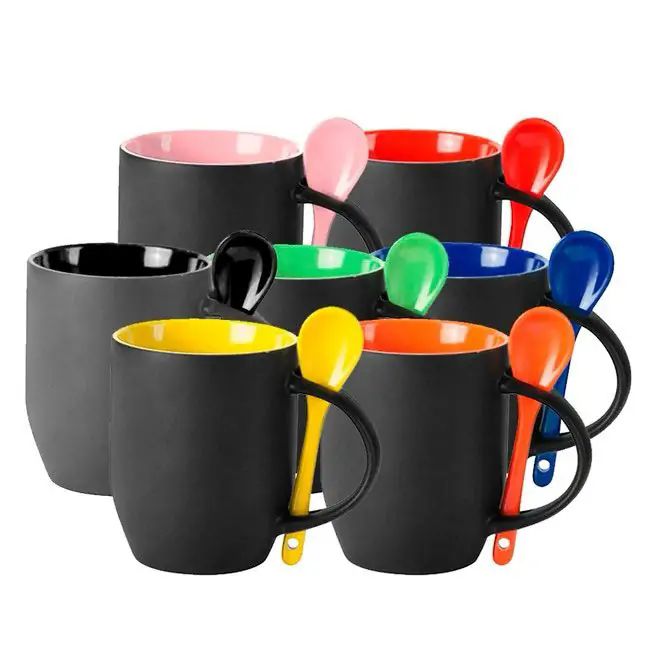 Ideal para sublimação, com aquele toque especial: colherzinha de cerâmica no encaixe da alça. Prática, charmosa e surpreendente! 🥄🖤